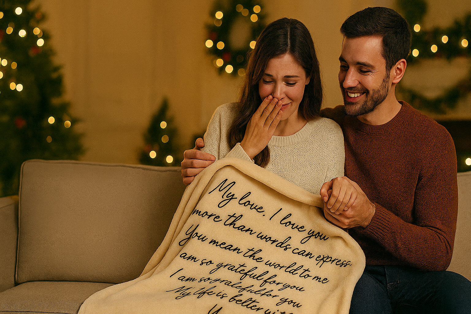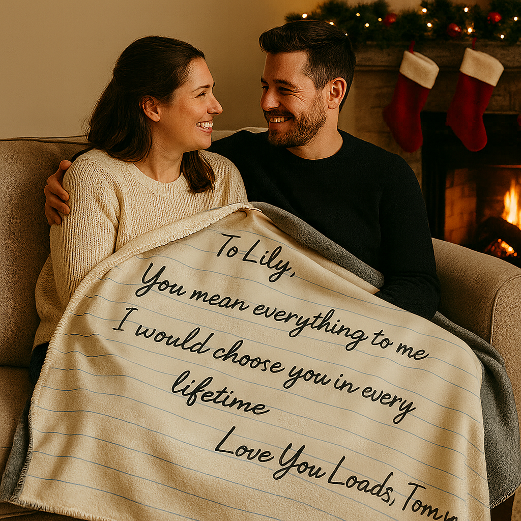 Picture Christmas morning. They unwrap the gift, unfold the blanket… and there it is. Your words - a love letter, a thank-you, a memory - printed across something they’ll wrap around themselves for years.